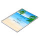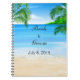 Beach theme Wedding Guest Book with tropical blue waters and palm trees. Great wedding book for beach or destination weddings. Beach art featuring a sandy beach, palm trees,and tropical blue waters background for your personalized invitation. Matching Invitations, Thank You's, and additional wedding products available.