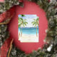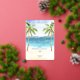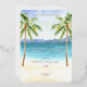 Tropical Beach wedding Invitation foil gold with sea and palm trees with lights