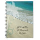 The pretty personalized Tropical Beach Wedding Spiral Notebook can be used as a guest book, advice book or organizer for your wedding planning details. This natural custom seashore wedding note book features a scenic nature photograph of a turquoise or aqua blue ocean on the sand shore with a white palm tree and teal swirl design adorning the corner. Perfect for a casual yet classy island destination wedding theme in the tropics.