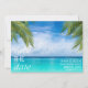 Tropical blue waters beach scene wedding save the date for your destination wedding. Customize with your names, wedding date and location and add your photo on the back.