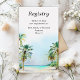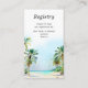 This elegant and beautiful watercolor wedding registry enclosure card features a beach, blue sky and palm trees. The text combines handwritten script and sans serif fonts for a stylish and modern look. This is perfect for a summer beach or tropical destination wedding.