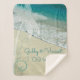 The newlywed bride and groom will love to snuggle up with the natural Tropical Beach Wedding Sherpa Blanket. This soft and cozy wedding blanket features a nature photograph of a turquoise aqua blue ocean and a sandy beach with a white palm tree and teal swirls adorning the corner. It makes a great keepsake gift idea for a casual yet classy tropics or island destination beach engagement party, bridal shower or wedding theme.