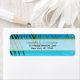 Wedding address labels. A gorgeous photograph of a tropical beach. The water is crystal clear and azure blue. The image is framed with some sheltering palm fronds.