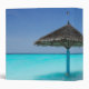 A binder personalized with your info such as Wedding Plans, or whatever suits your needs. Designed with a photograph of a scenic tropical beach in The Maldives. A white sandy beach and crystal blue waters with a secluded thatched umbrella. Idyllic and serene.