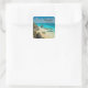 Tropical Beach with Wind Swept Palm Trees Birthday Square Sticker