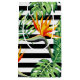 Tropical bird of paradise, monstera and banana leaves on a black and white stripe background, you'll have fun with these gift bags available in 4 sizes. MATCHING items in our store.