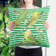 Tropical birds in green white stripes throw pillow