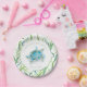Sweet personalized plates for your tropical or nature themed baby shower feature a seaweed leaves border with a watercolor sea turtle in shades of blue and green. Personalize with the mama-to-be's name and shower date. To see the matching beach theme aloha party decor visit www.zazzle.com/dotellabelle