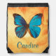 Tropical Blue and Turquoise Gem Colored Butterfly Drawstring Bag