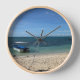 Tropical Blue Ocean Beach & Boat:Summer Wall Clock
