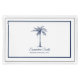 Add your own special touch to this simply elegant acrylic tray set design featuring your family name or phrase and established date in blue text and palm tree framed in a blue square border over a white background.
