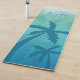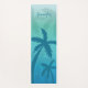 Destei's tropical theme yoga mat with blue palm tree silhouettes on an aqua blue background color. There is also a personalizable text area for a name in a beautiful script font.