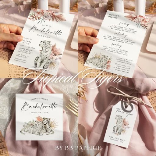 This adorable tropical inspired design adorned with boho floral and tigers is perfect for a fun party!
