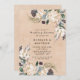 Design features a printed colored with floral element in shades of natural tan and white over greenery leaves and protea blooms. Great for your wedding celebrations!