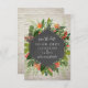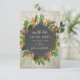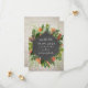 An elegant wedding r.s.v.p. invitation featuring a chalkboard inspired geometric design surrounded by tropical greenery over a white brick background.