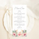 This lovely wedding reception menu card features beautiful watercolor botanicals and florals with elegant typography. Together these elements create a rustic yet elegant wedding menu that would be perfect for a destination wedding. This design coordinates with our Tropical Botanical wedding suite. See the collection for more items!