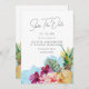 This elegant tropical themed save the date card features gorgeous watercolor botanicals with elegant yet modern typography. This is the perfect save the date for a tropical island destination wedding. See the collection for coordinating items!