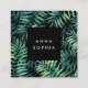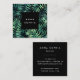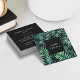 Elegant business cards with a chic tropical island vibe feature a background of vibrant green jungle botanical leaves. Personalize the front with your name or business name, and add your full contact information to the back in modern white lettering on a crisp black background.