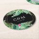 Tropical Botanical Wedding Monogram and Date Round Paper Coaster