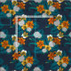 Tropical bouquet on blue fabric