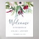 This tropical breeze welcome wedding poster is perfect for an elegant spring or summer wedding. The floral design features red, burgundy, blush and white flowers on a bed of watercolor eucalyptus and tropical greenery with a relaxed Hawaiian feel. Customize the poster with the name of the bride and groom, and the date of the wedding.