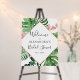Tropical Green Palm Leaves and Blush Pink Flowers Floral Watercolor Spring or Summer Wedding Bridal Shower Welcome Sign - includes beautiful and elegant script typography with modern tropical botanical flowers and greenery for the special Bridal Shower celebration.