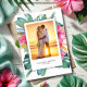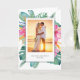 These folded wedding thank you cards feature a beautiful photo of the bride and groom framed by vibrant pink hibiscus flowers and lush monstera palm leaves in colorful watercolor detail. Designed with a tropical and floral aesthetic, this elegant card is perfect for a destination wedding, beach celebration, or island-inspired event. Use the easy template fields to personalize the couple’s names and add your custom message for a meaningful and stylish keepsake.