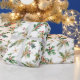 This tropical beach themed Christmas wrapping paper features a coastal pattern of starfish, holly leaves and berries, and pine sprigs, on a white background.