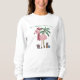 Snuggle up in this cozy sweatshirt featuring a stylish flamingo bundled up for winter, chilling by a palm tree with wrapped presents. Perfect for laid-back holiday vibes! Illustration created by Lavender Mint Graphics. Nothing is AI-generated.