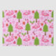 This is cute Christmas flamingo wearing santa hats with Christmas trees, gifts, ornaments, and snowflakes on pink background. It's great looking tissue paper for Christmas season