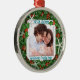 Tropical Christmas photo ornament to welcome a new baby. For the new parents, a holly wreath of green and red with white starfish frame the family photo (or baby picture). Customize with date of birth and other text, such as "welcome - child's name".