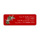 Tropical Christmas return address labels in dark red with printed white text. Add up to four address lines. Decorated with white starfish and green holly.