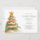 This tropical Christmas party invitation features a whimsical sand Christmas tree decorated with festive ornaments and topped with a starfish. Perfect for beach lovers and coastal families, who are planning a Christmas celebration.