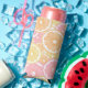 Seltzer Can Cooler with a tropical citrus fruit pattern in happy summer colors to brighten your day - Kate Eden Art.