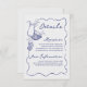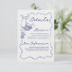 Let your guests know your pertinent wedding information with this hand drawn Details enclosure card featuring a tropical coconut cocktail and pineapple doodles inside a wavy squiggle border. The text is in a casual script style and can be customized to share your wedding details such as reception, accommodations and wedding website. On the reverse side is a couple's crest illustration with a sea shell that you can customize with each of your initials to add an extra personal touch. The colors are nautical navy blue on an off-white background and are perfect for beach and coastal themed weddings.