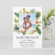Modern Watercolor Tropical Coral Floral, Greenery and Palm Leaves Save The Date Photo Engagement Announcement Card