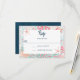 Tropical, "Under the Sea" theme wedding RSVP card features a colorful watercolor coral reef and seashells in shades of aqua, mint, coral, and pink with navy blue lettering. Reverse side is a pattern of seashells and coral on a navy blue background. Coordinates with my "Tropical Reef" collection and is perfect for beach, nautical, ocean, coastal and destination wedding themes. Original artwork KL Stock