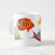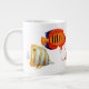 Original fine art design of colorful saltwater tropical fish by artist Carolyn McFann printed on a quality jumbo specialty mug for coral reef life fans.
