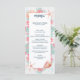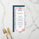 Nautical, "Under the Sea" theme wedding menu features a colorful watercolor coral reef and seashells in shades of aqua, mint, coral, and pink with navy blue lettering. Reverse side is a pattern of seashells and coral on a navy blue background. Coordinates with my "Tropical Reef" collection and is perfect for beach, nautical, coastal and destination wedding themes. Original artwork KL Stock