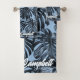 Tropical Dark Blue Black Monstera Leaves Name Bath Towel Set