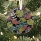 Tropical Dark Leaves: Textile Pattern Design Glass Ornament