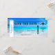 A tropical beachside image is the background for this Boarding Pass Destination wedding Save the Date.