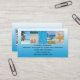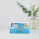 Business card featuring a range of tropical beach themed photos on a white and turquoise blue background. On the back is space for your own photo or a QR code. Great for a travel agent or travel blogger, and customizable for any other purpose.