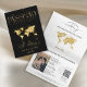 Modern and Elegant World Map Invitation Wedding Destination, like passport with glitter palm trees and heart. Add your QR code