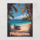 Transport yourself to the sun-kissed shores of the Philippines with this vintage travel poster postcard. Palm trees sway against azure skies, inviting you to explore pristine beaches and vibrant culture. Whether you’re a wanderer or a collector, this postcard captures the essence of paradise.