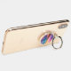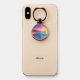 The piece to peel off is on the entire back of the grip when received, though it's not super easy to tell, just lift carefully with a fingernail end and peel off. The grip sticks well to the phone, is very stable and immobile once adhered. Know exactly where you want it before pressing it on. The printing was fine, colours were quite true to what I saw on my personal screen. Fine small lines turned out well. The artist's Mandala design is gorgeous.