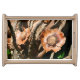 Tropical Dried Coconut Flowers Rustic Wood Serving Tray