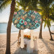 Tropical Elegance Fans, elegantly designed handheld fans featuring a refined tropical-inspired pattern, perfect for adding both style and function to garden or beach weddings, or any tropical-themed event. These fans are ideal for keeping guests cool while complementing your wedding decor with a touch of sophistication and charm. They make excellent wedding favors or thoughtful accessories for a memorable celebration. This design is created using a digitally edited AI image.