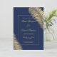 Yes, you can print on the back of your invitation for free! Most designs already have a corresponding design on the back that can be personalized using the Design Tool and going to Layers. This is a great way to communicate more information or further personalize your Tropical Elegant Navy Blue Gold Foliage Wedding Invitation. The option is really up to you.