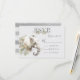 Beautiful watercolor Jungle Elephant RSVP response cards with floral elements and grasses with blacks, greys and green foliage on a faux, very light grey background. The Back is a grey watercolor grey striped background. Perfect for a safari, zoo, African or wild animal wedding.